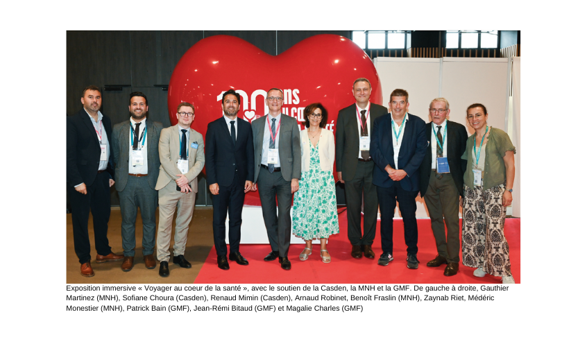 avec le soutien de la Casden, la MNH et la GMF. De gauche à droite, Gauthier Martinez (MNH), Sofiane Choura (Casden), Renaud Mimin (Casden), Arnaud Robinet, Benoît Fraslin (MNH), Zaynab Riet, Médéric Monestier (MNH), Patrick Bain (GMF), Jean-Rémi Bitaud (GMF) et Magalie Charles (GMF).